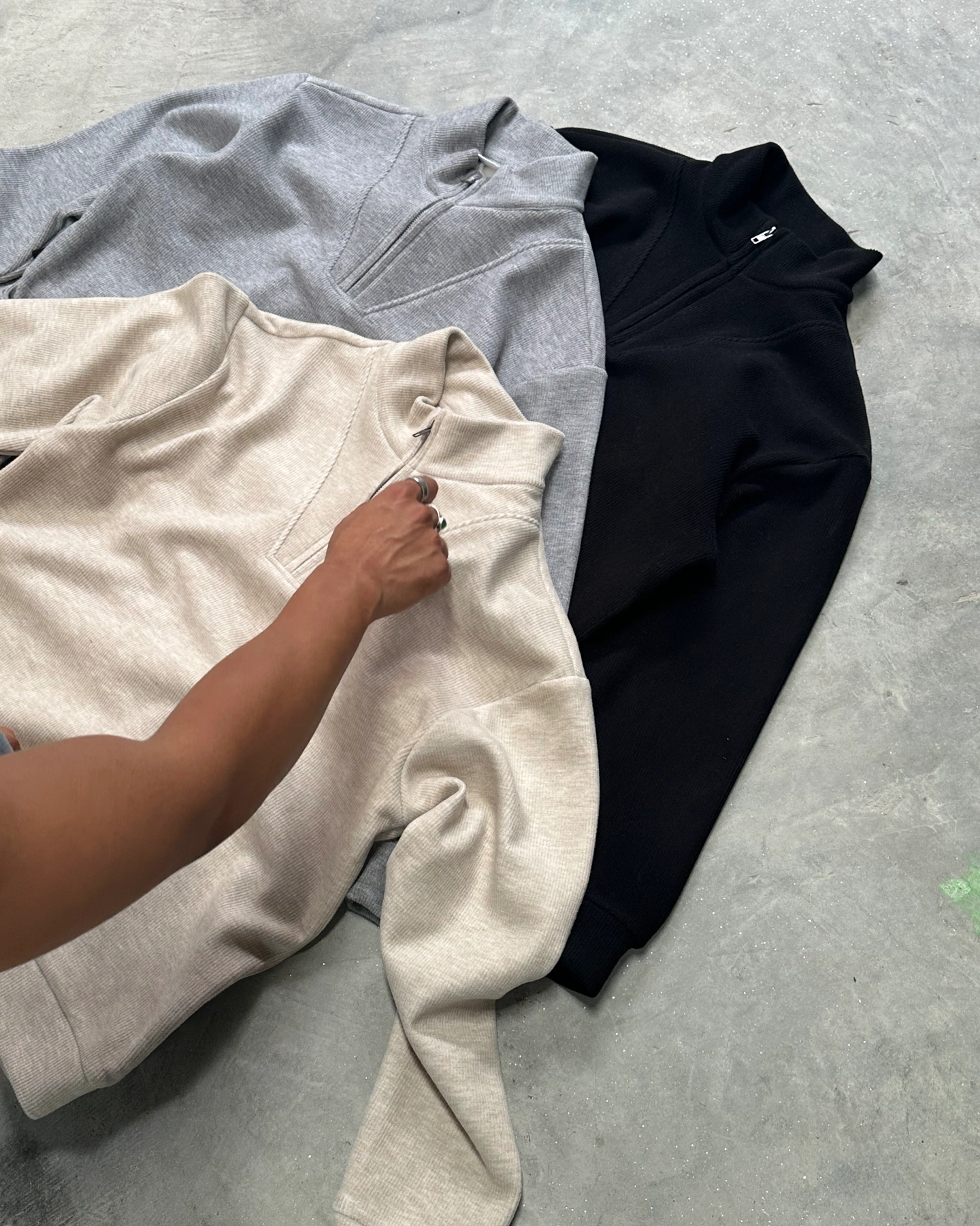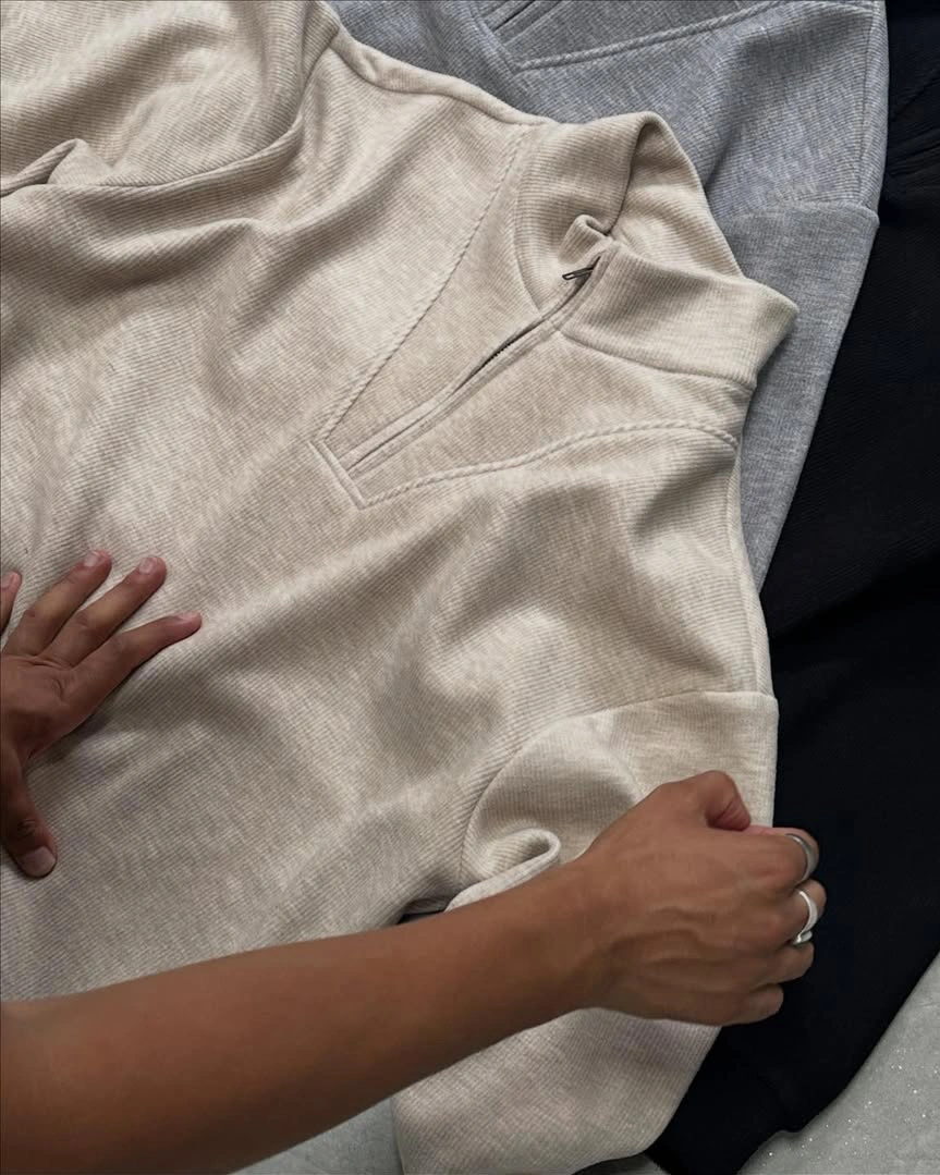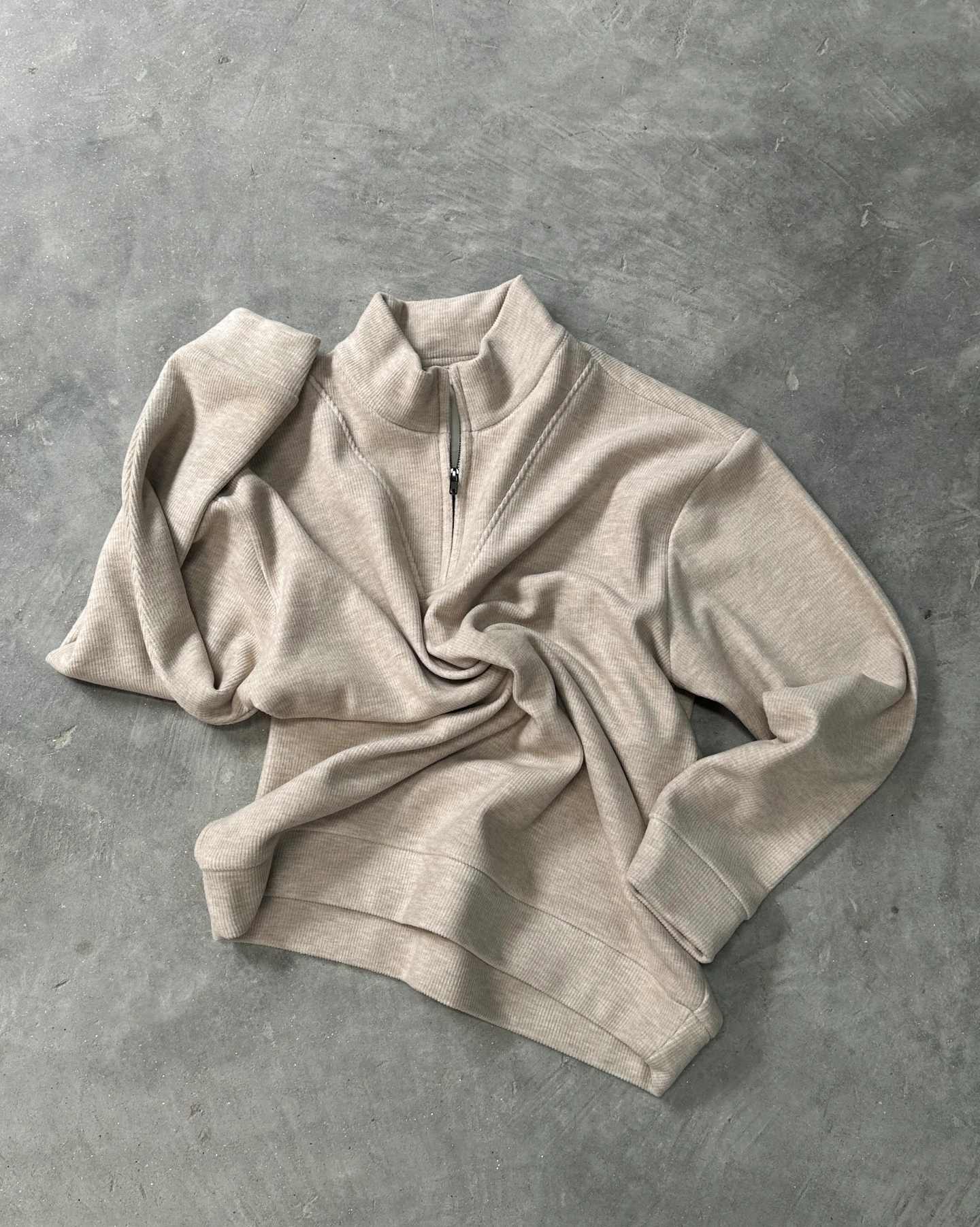 Clean, cozy, and versatile — this cream zip-up pullover is made for effortless layering. Featuring a soft-touch fabric and a relaxed fit, it’s your go-to for everyday comfort with a minimal look.