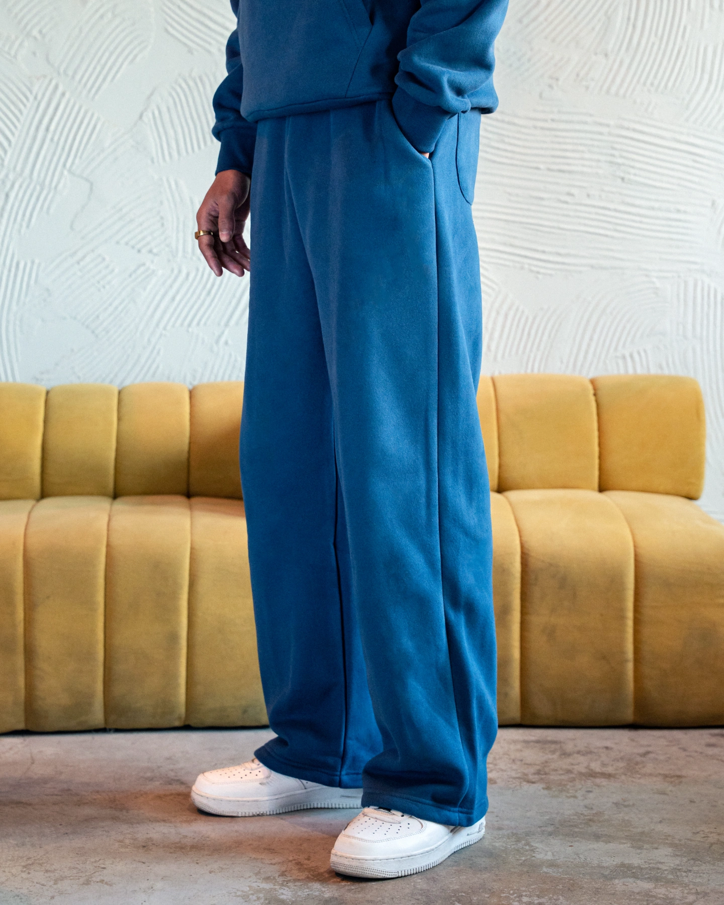Cut to a wide-leg silhouette, our sweatpants bring a sense of sophistication to everyday dressing. They are made from 400gsm brushed fleece cotton. Focusing on comfort, we have added ribbed elastic on the waist.