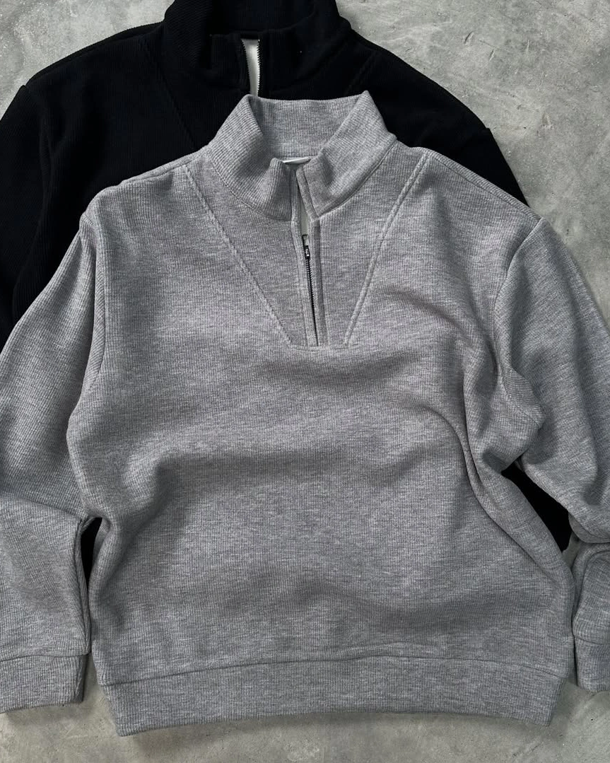 Laid-back and easy to style, this grey zip-up pullover blends comfort with simplicity. Its soft fabric and subtle tone make it perfect for casual days or layering on the go.