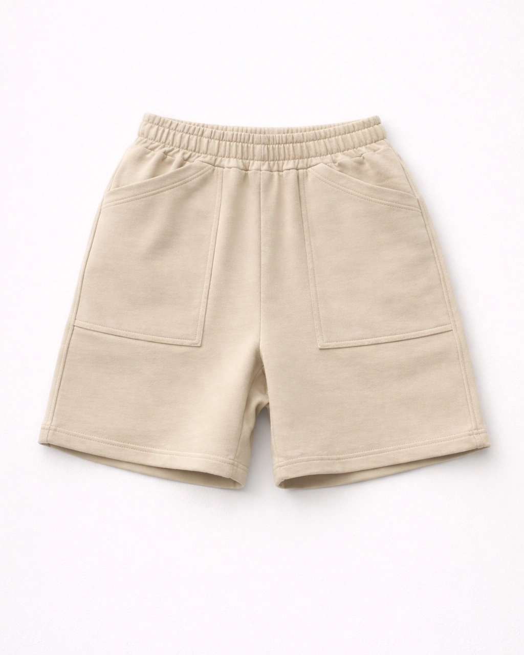The Beige Structured Terry Shorts are designed for comfort and simplicity. The neutral tone makes them highly versatile, pairing easily with any outfit. Constructed from soft terry fabric, they offer a balanced feel — breathable yet structured. The elastic waistband ensures a comfortable fit, while the oversized front pockets add functionality without disrupting the clean design. Perfect for laid-back, everyday use.