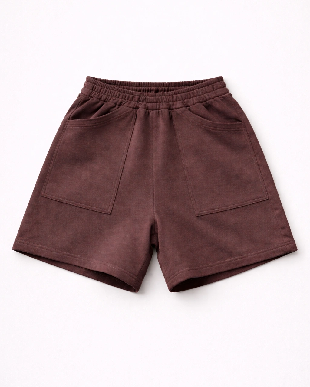 The Brown Structured Terry Shorts bring a softer, more elevated tone to your everyday essentials. The rich brown color adds depth, while the clean silhouette keeps it minimal. Made from premium terry fabric, they maintain shape while staying comfortable throughout the day. The elastic waistband provides flexibility, and the front patch pockets offer practical utility with a modern look. Designed for effortless styling.