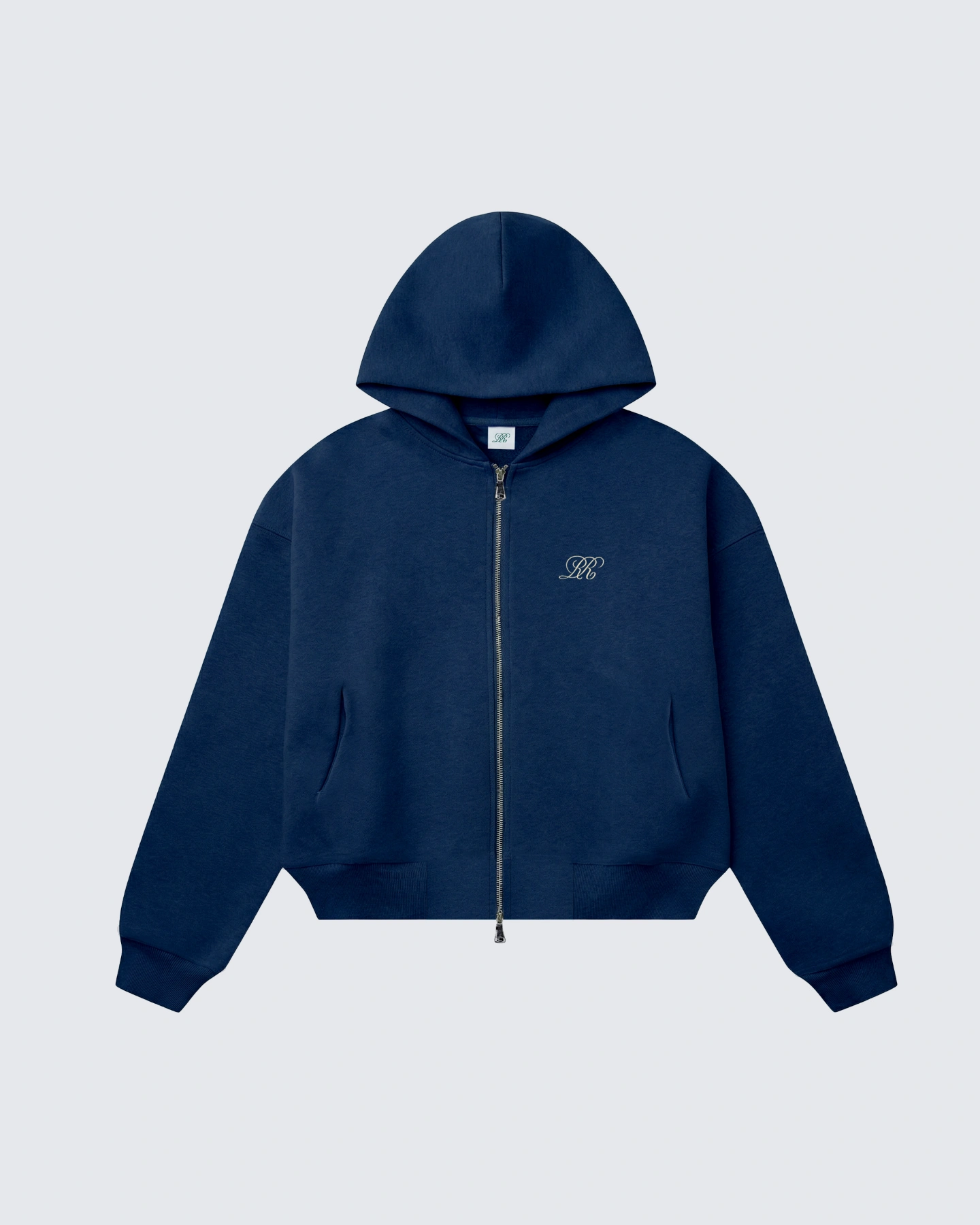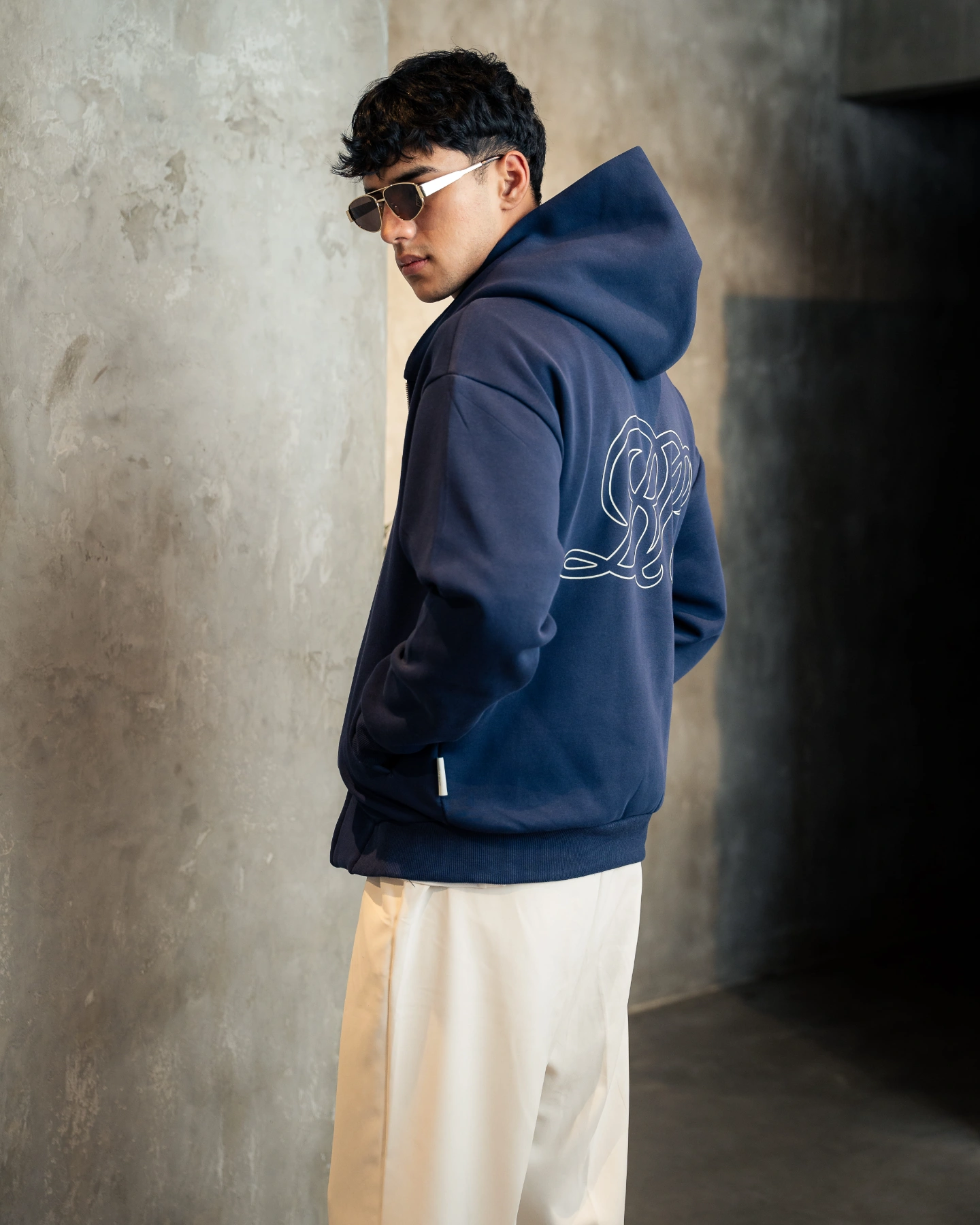 TWO-WAY ZIP HOODIE-NAVY BLUE